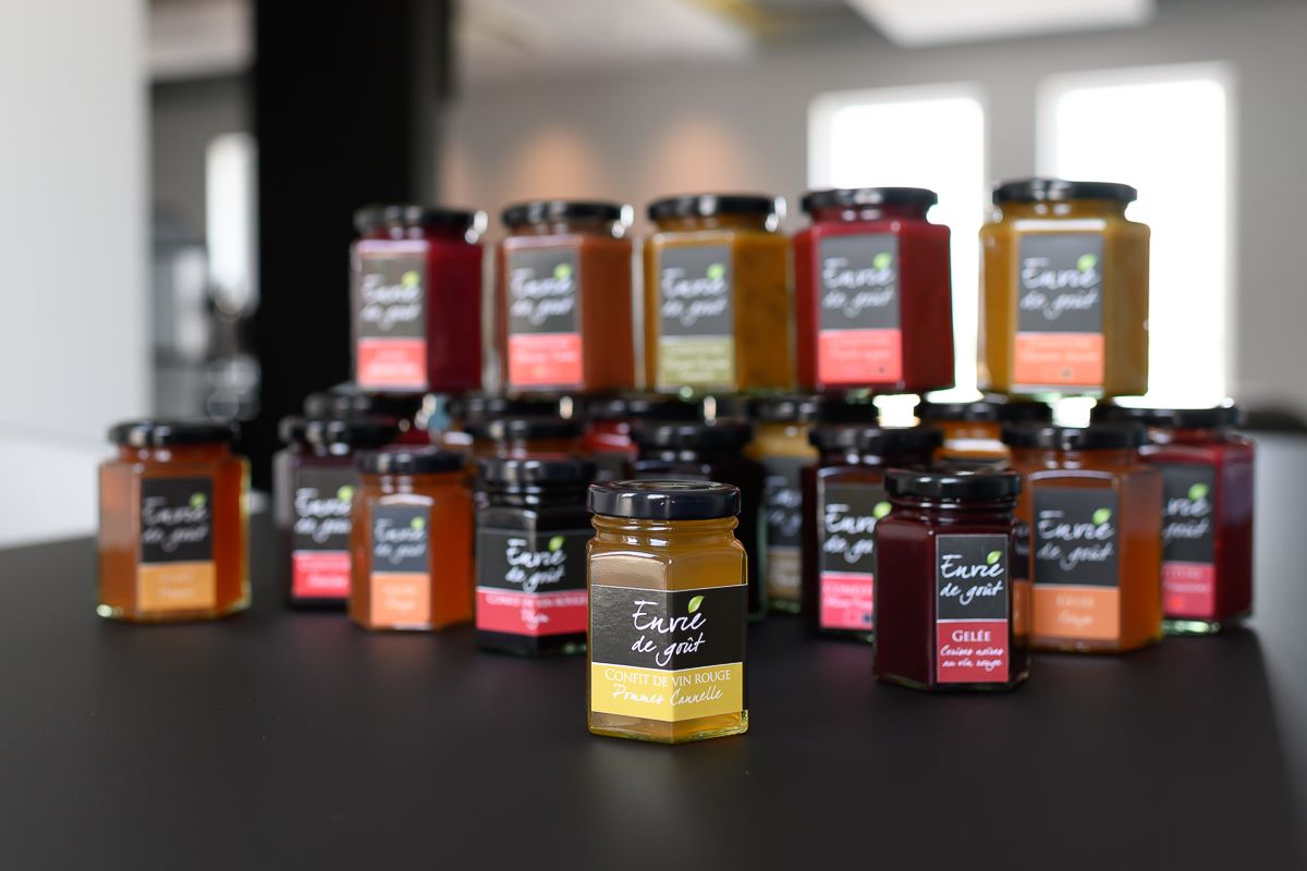 Production locale et artisanale de confitures et gelées allégées en sucre. Notre assortiment se décline en une vingtaine de saveurs. Vous pouvez trouver nos produits dans les commerces locaux ou sur commande par téléphone ou par mail.
