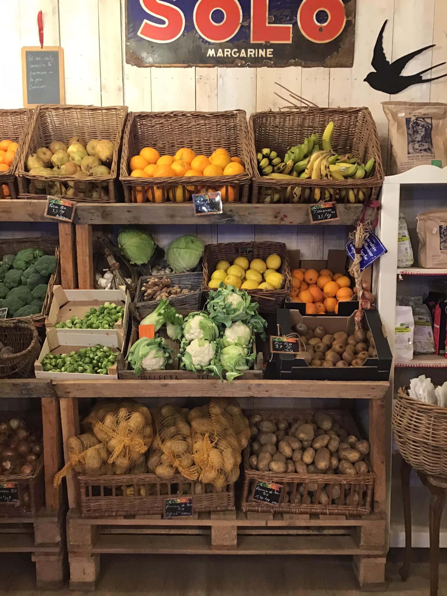 – légumes du jardin (pommes de terre bio) et fruits de saison (spécialisé dans les potirons et coloquintes)