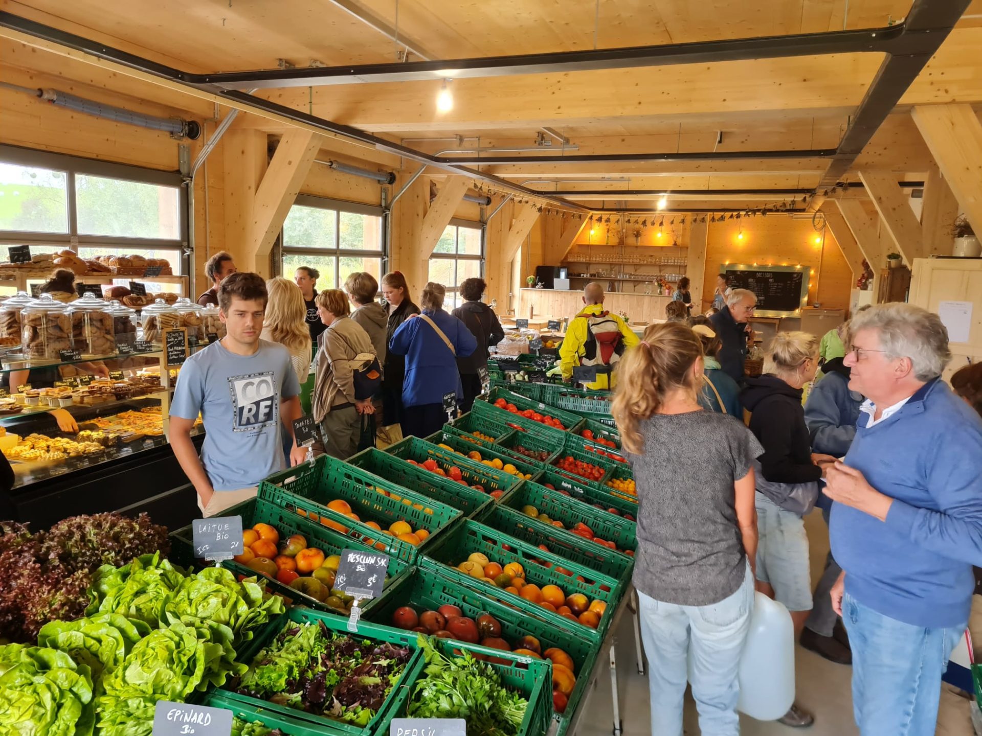 1/ Le pôle nourricier constitue le cœur de la Coopérative. Il propose un magasin à la ferme, où l’on trouve les produits de la Ferme agroécologique de la Préale, ainsi que ceux d’autres productrices et producteurs locaux partageant les mêmes valeurs et respectant la Charte des producteurs et productrices.