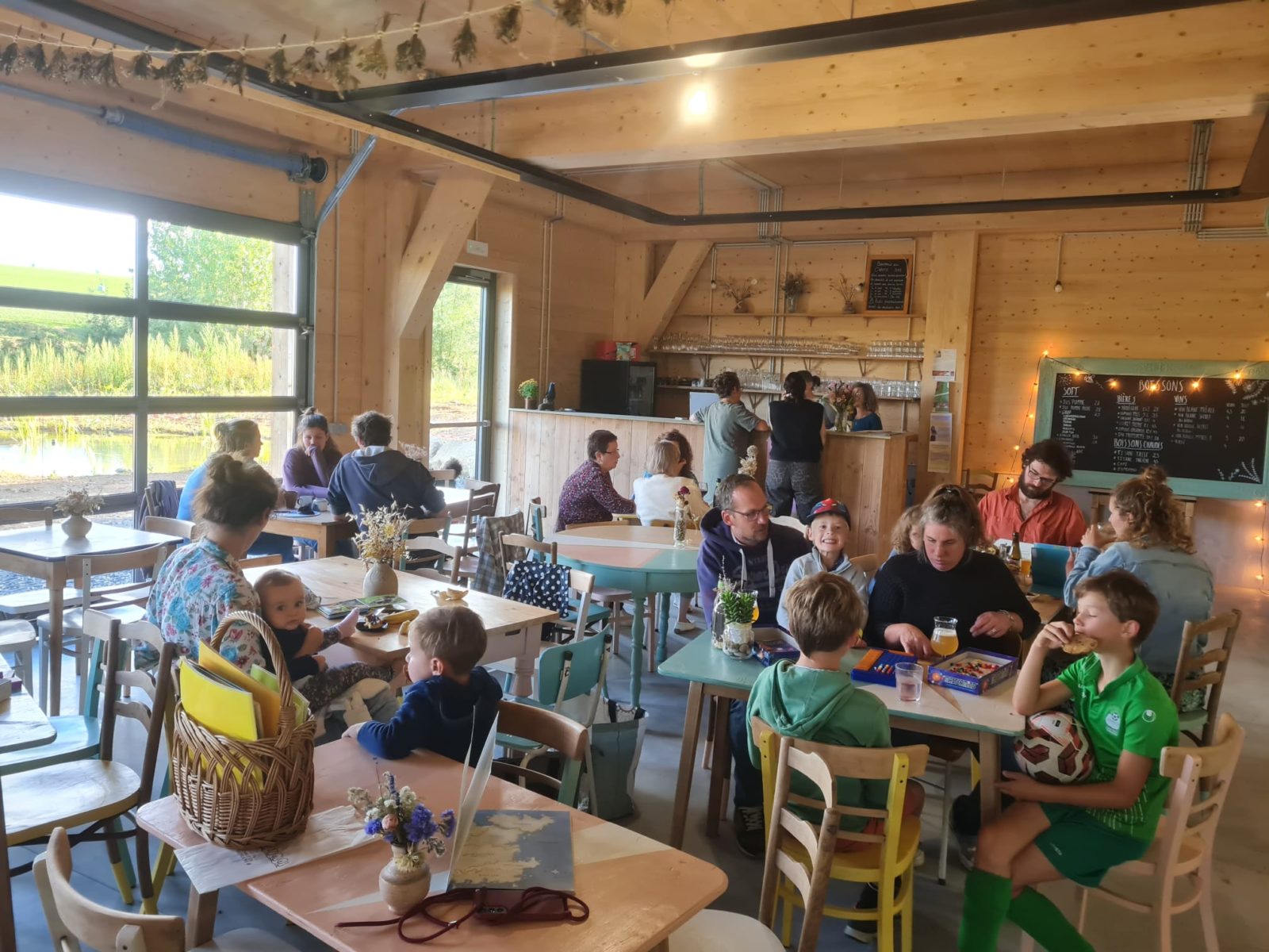 C’est aussi une guinguette, ouverte les jours de magasin, où l’on peut se détendre dans un cadre verdoyant, que ce soit seul, en famille ou entre amis, en savourant les produits de la ferme.