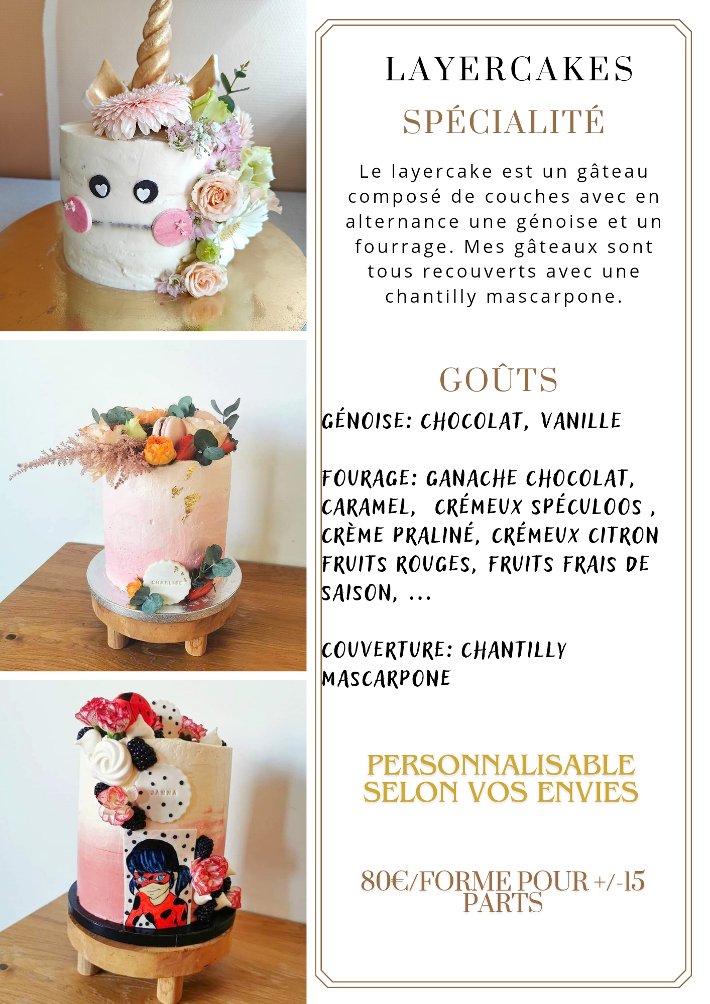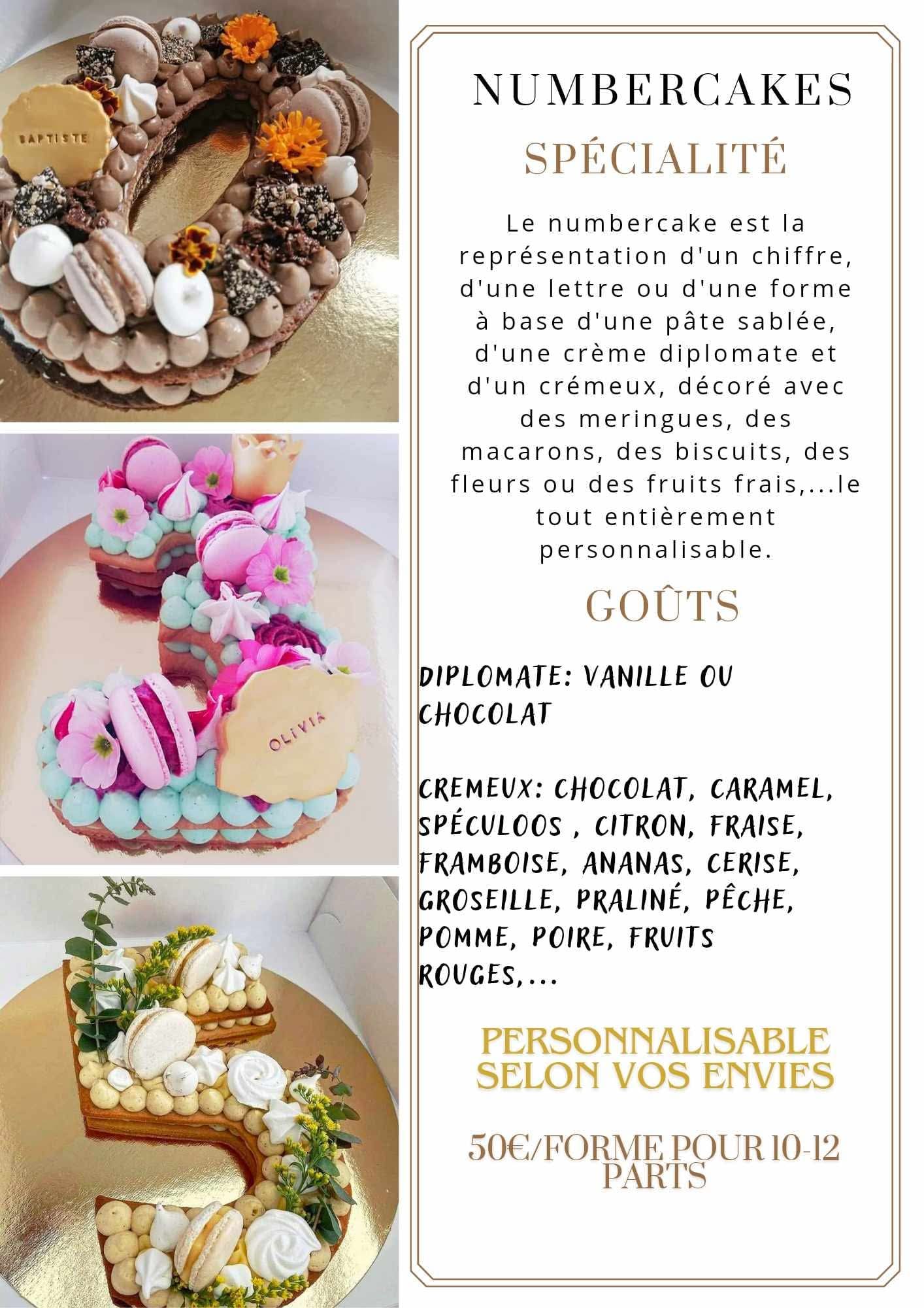 Réalisation de biscuits personnalisés, de numbercakes et de layercakes.